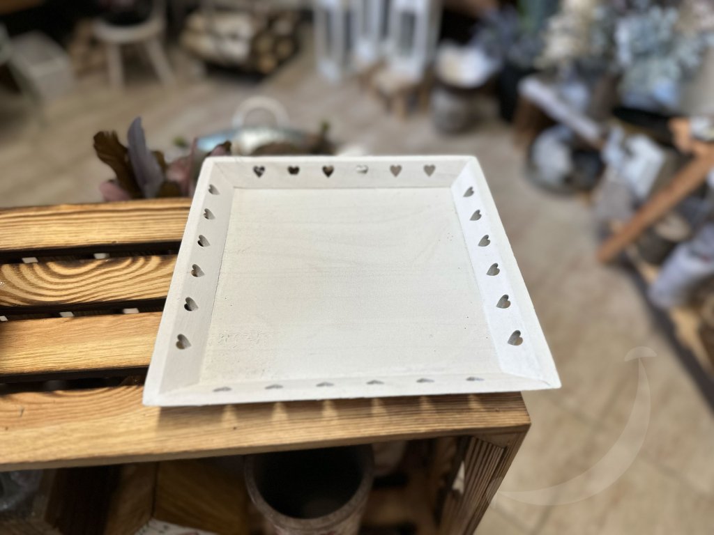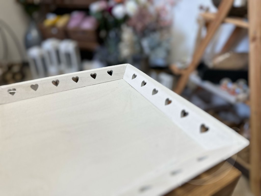 Dřevěný podnos bílý se srdíčky